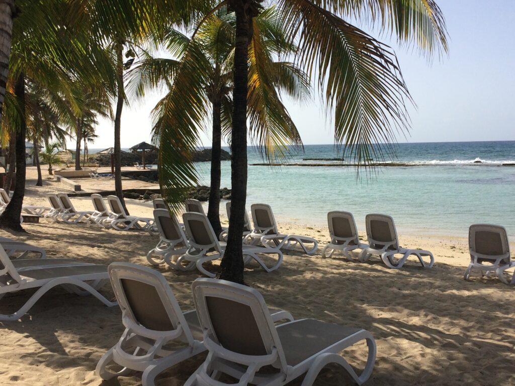 Vous pourrez aussi résider dans ce joli appartement 3 pièces qui vous offrira toutes les commodités pour des vacances d’exception en famille ou entre amis. Composé d’une kitchenette équipée, d’un séjour, d’une salle de bains, d’une chambre double, d’une petite chambre avec un lit superposé, d’une belle terrasse, l’espace est entièrement climatisé. Vous serez à proximité des belles plages de Ste Anne et du Gosier. Vous aurez accès à pieds à l’immense piscine du complexe, à la plage et aux transats à peine 5 mn. Au plaisir de vous recevoir!